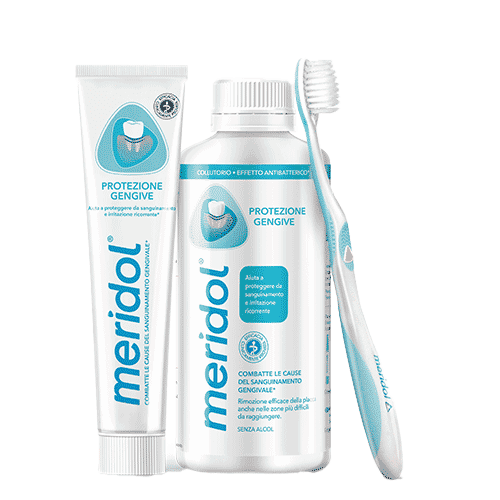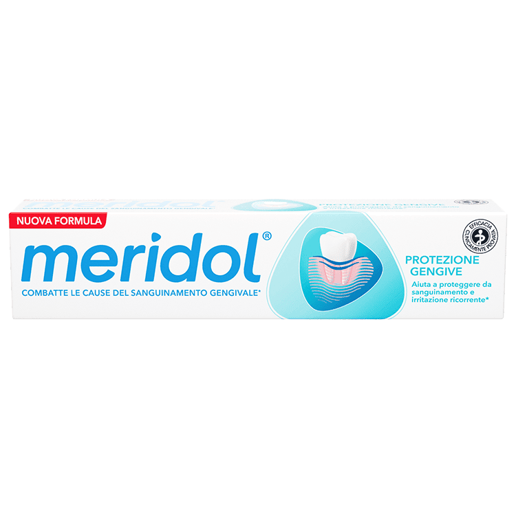 Prenditi cura di denti e gengive con il dentifricio meridol Protezione gengive. Questo dentifricio per gengive è stato sapientemente creato per combattere il sanguinamento e l'infiammazione gengivale in modo rapido**, agendo sulla causa principale*, non solo sui sintomi. Il dentifricio aiuta anche a proteggere dalle recidive* e la formula delicata a doppia azione agisce efficacemente per fornire un rapido effetto antibatterico* e una protezione di lunga durata.
